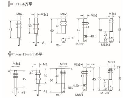 Thread size / 螺紋尺寸:    M8屏蔽式  /  M8非屏蔽式