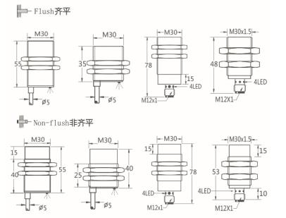 Thread size / 螺紋尺寸: M30屏蔽式 / M30非屏蔽式
