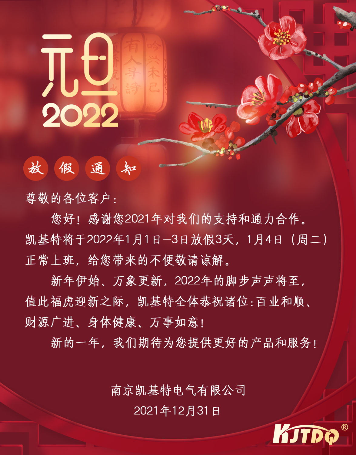 凱基特2022春節放假通知