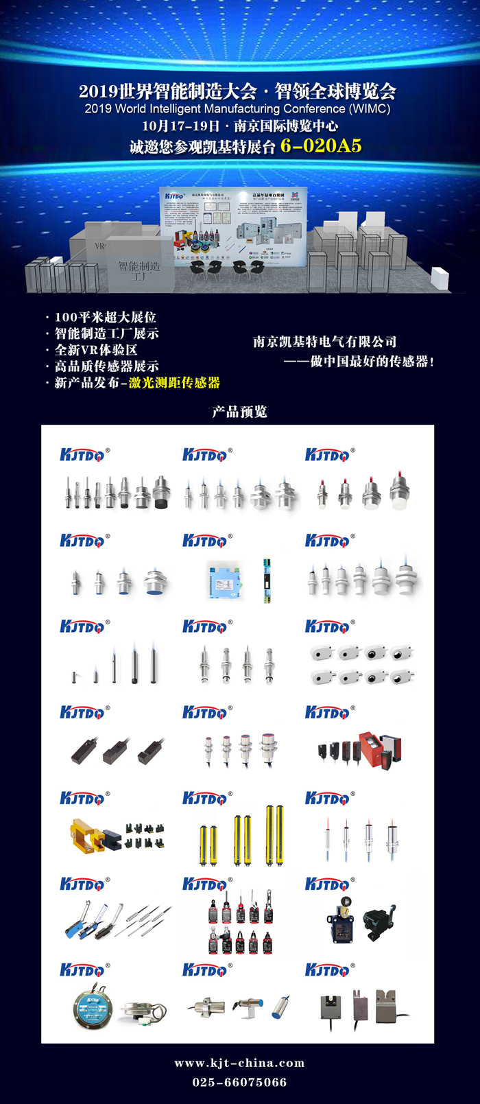 您好!感謝您一直以來對我們的支持。南京凱基特電氣有限公司將于2019年10月17日-19日參加在南京國際博覽中心舉行的2019世界智能制造大會。大會將全面展示智能制造領域的適合新技術和頂尖產品,分享智能制造實際應用解決方案,發布國內智能制造示范企業的適合新發展成果。屆時,凱基特在6-020A5展位與您一起見證“讓制造更聰明”!